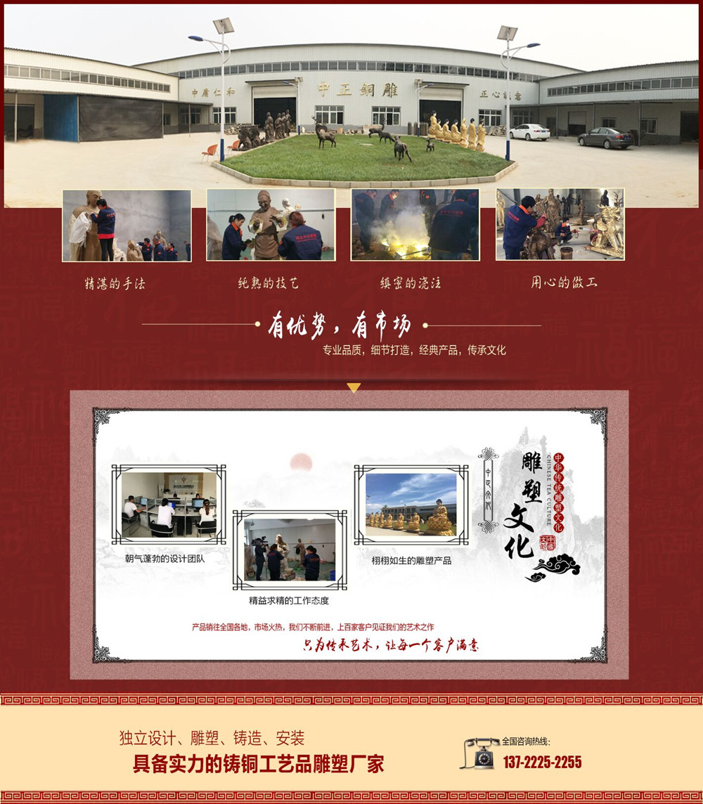 網(wǎng)站公告:響應國家號召,打造綠色鑄銅雕塑環(huán)境!是專業(yè)的銅雕,人物銅雕,動物銅雕,城市銅雕,銅雕廠家。公司宗旨:市場永遠在變,誠信永遠不變。
